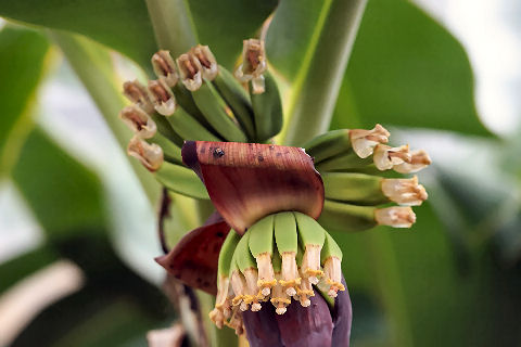 こちらは温室の中にある睡蓮の花、一番下はバナナの花。 |