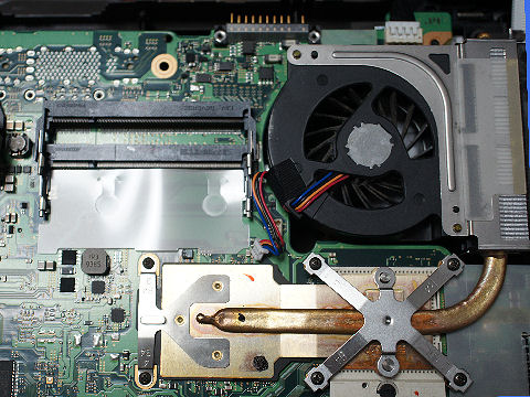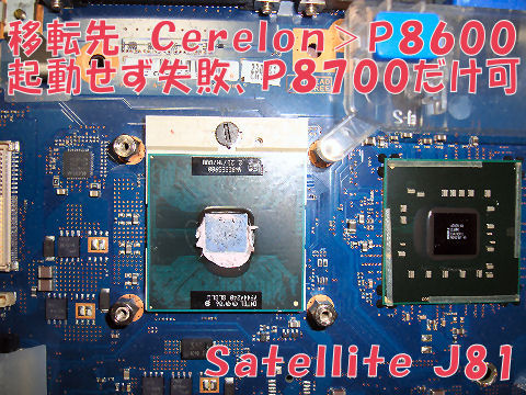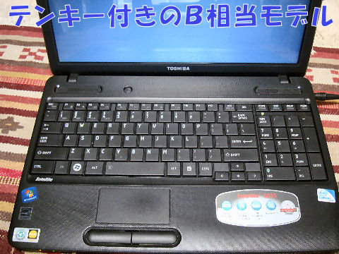 Satelliteシリーズだが安価版のよう、CPUはセレロンで2.2GHz、チップセットもGL、液晶は安価な1368*768、驚いたのはHDDアクセス表示も無くなっていること。 さらに無線LANのON/OFFスイッチも省かれている。SatelliteでもBシリーズは電源もDC15Vでビジネス仕様の作りだが、これは違う。 |