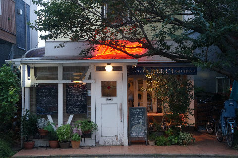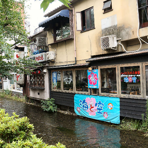 熱低に変わった台風の影響で南風が強く波が高い。 下は時々行くイタリア食堂を名乗るレストラン。 |