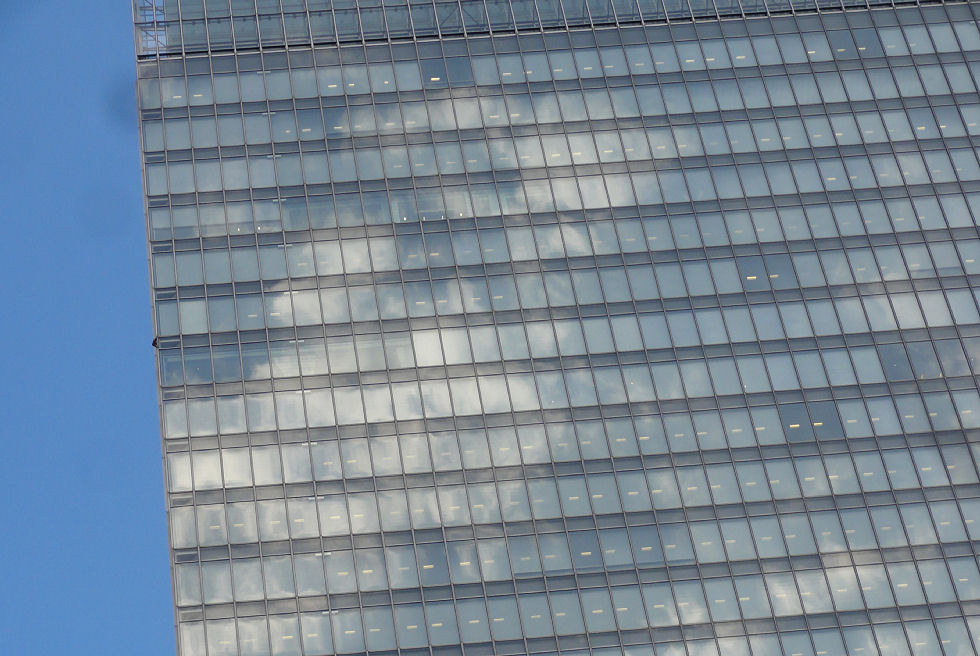 ビルに写る夏の空