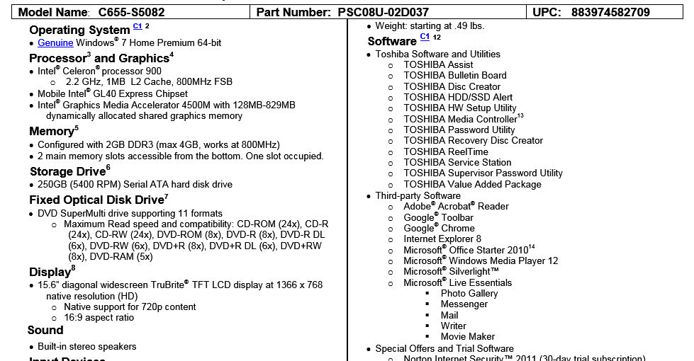 Satellite C655-S5082の仕様