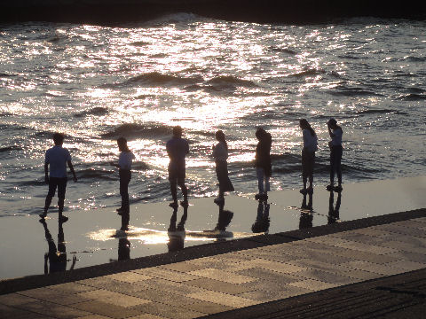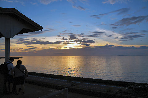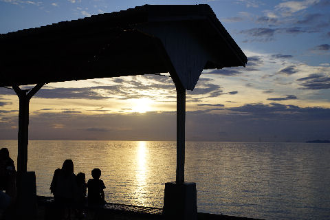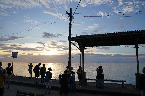 ![]() ![]() ![]() こんな不便な場所なのに車で来る人も多くて数十人が夕陽を眺めカメラで撮影するという事態になっている。 ぽつんと佇む屋根とベンチという風景に多数の人が映り込み風情はどこへ、という感じ。 |