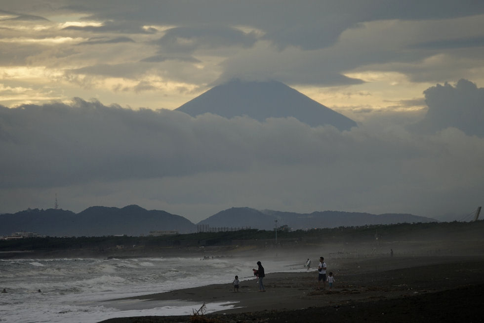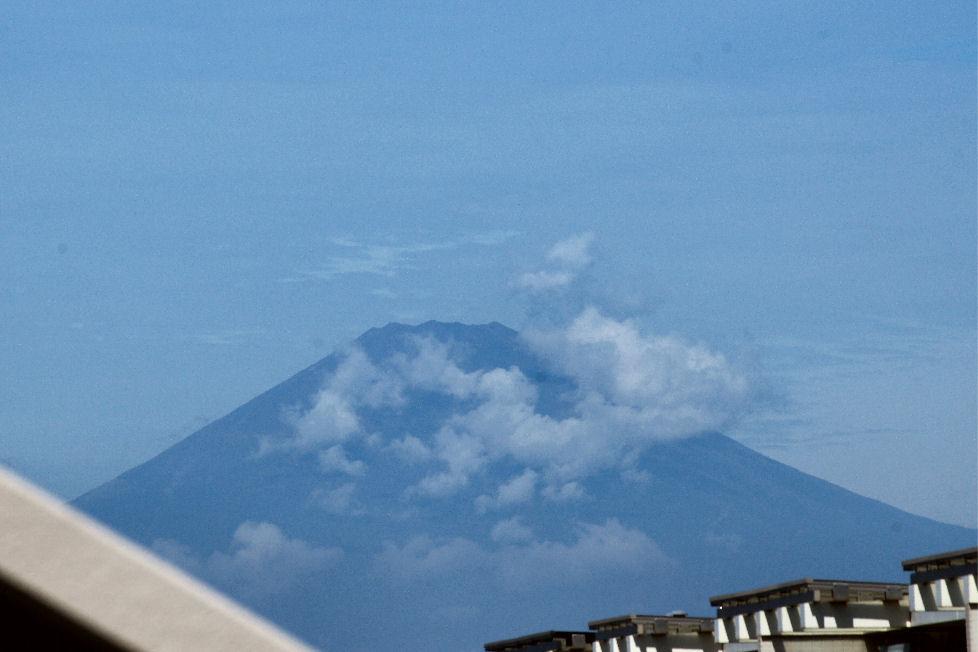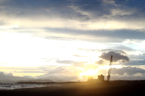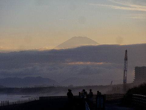 ![]() ![]() 富士山には雲が掛かりほとんど見えず、南風が強く雲は北へ飛ばされてゆく。 |