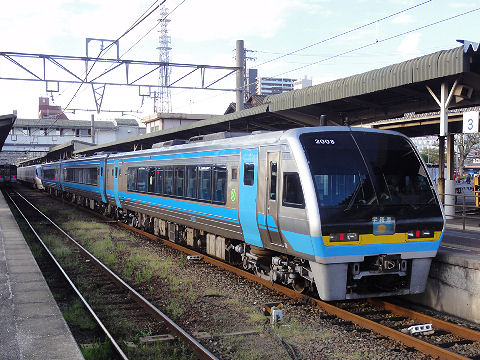 ![]() ![]() ![]() JR四国の幹線は岡山<>高松と岡山<>松山、それに岡山<>高知おようだが電化区間は限られていて 単線区間も多く未だディーゼルカーが活躍する区間も多い。予讃線も坂出から松山は一時間に特急と普通が各一本というダイヤ。 単線での待ち合わせも多くて特急以外は非常に時間が掛かり都市間バスなどに負けている感じがする。、 |