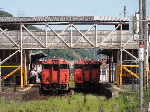 ![]() ![]() ![]() 岡山と総社を結ぶ桃太郎線、伯備線の格上げや特急運転などで盲腸線化し懐かしいキハ40、キハ47がそのまま現役。 岡山市内へのアクセスとしてLRT化する計画もあり、車両更新はストップのままのよう。 |