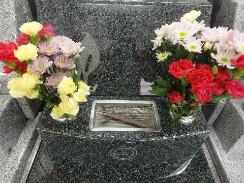 ![]() 前回の墓参りから16日目で花はすっかり無くなっていた(管理人が枯れた花は撤去してくれる)。 まだ早めだが墓苑には3つの花を売るテントが出ていた。 |