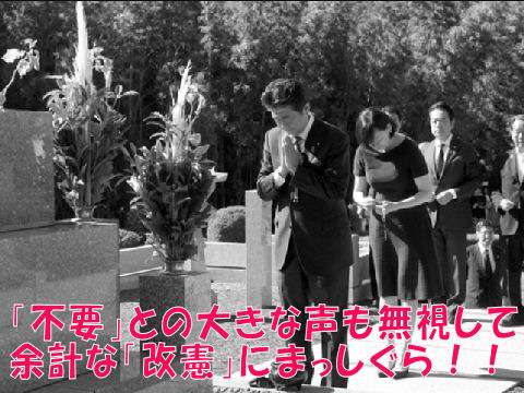 ![]() 身勝手な業績?造りの「改憲」に勝手に意欲を燃やす安倍、「小さな声をきく力」の公明党とは大違い。 アホノミクス自民党は「大きな声も無視して改憲」なのか。国民の声は違う政策を希望、景気回復など緊急課題 が目白押しなのに何故「改憲}? |