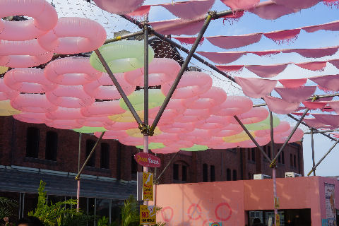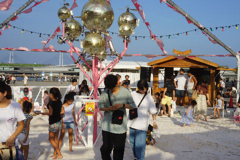 ![]() ![]() ![]() 赤レンガ倉庫の間のスペースでは白砂の浜辺のイベント、といっても飲食店のイベントだけど。 |