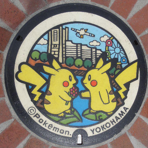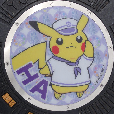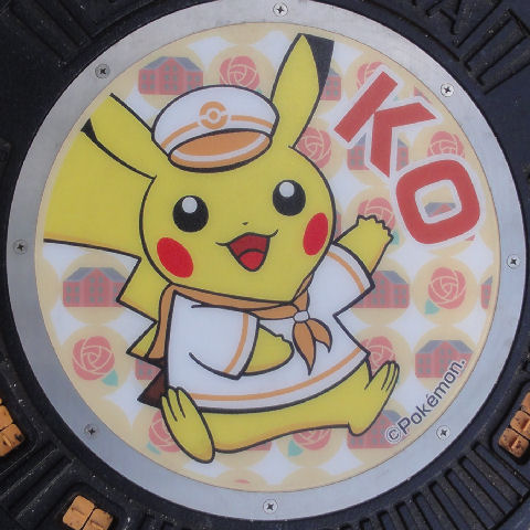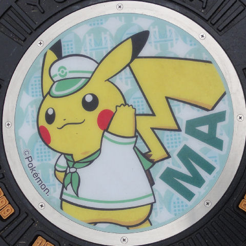 ![]() ![]() 普通のマンホールと違い鉄に直接模様を刻まないで、カラーの柄をマンホール表面に貼り付けて 金属で周囲を取めたような構造、周囲の金属輪が写っている。 |