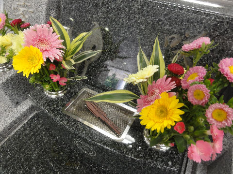 ![]() ![]() 早く戻れたので昼食後、墓参りに。お盆が過ぎてどこの墓も花が無くて寂しい状態に。 |