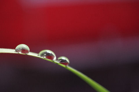 ![]() ![]() いつも公園で雨上がりに葉っぱに綺麗な水滴がついているので、雨上がりに葉っぱを取ってきて 撮影してみた。葉の上に綺麗に並べて水滴を乗せるのが結構難しい。 |