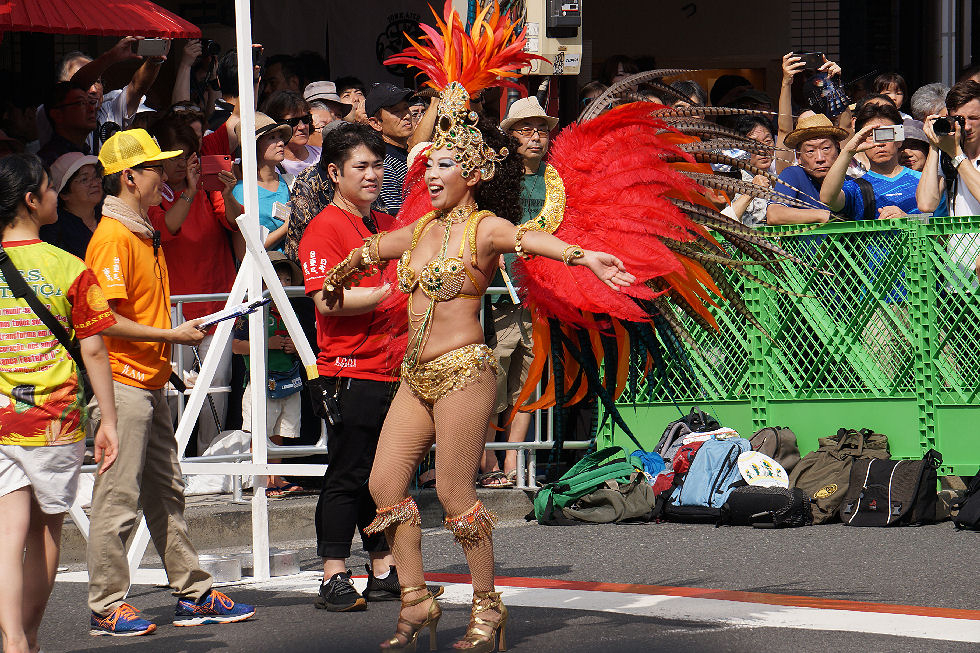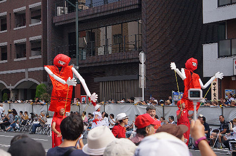 ![]() ![]() ![]() さすがの大混雑で道路沿いは人が何重にも重なってまったく路面が見えないという状況、パレードの距離が短い割に 人が多い、歩道も狭いので余計に混雑(京都の祇園祭より酷い混雑)。 |