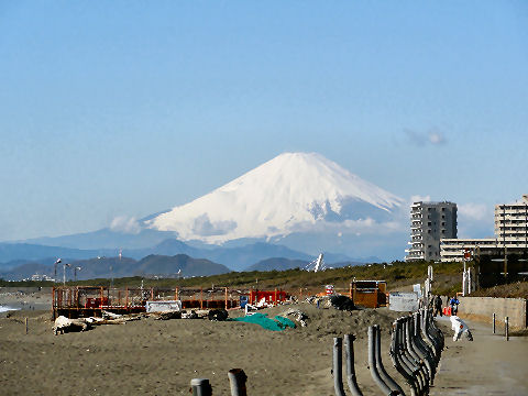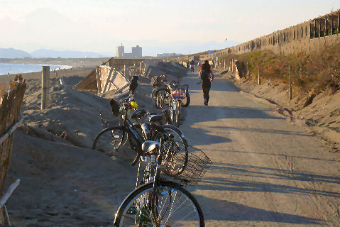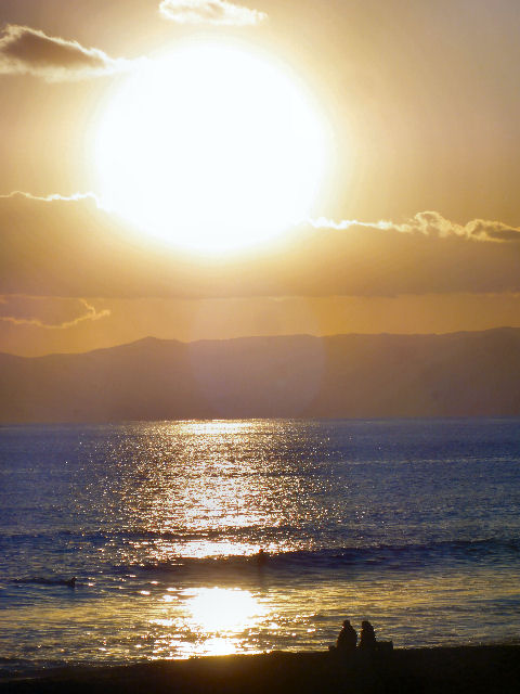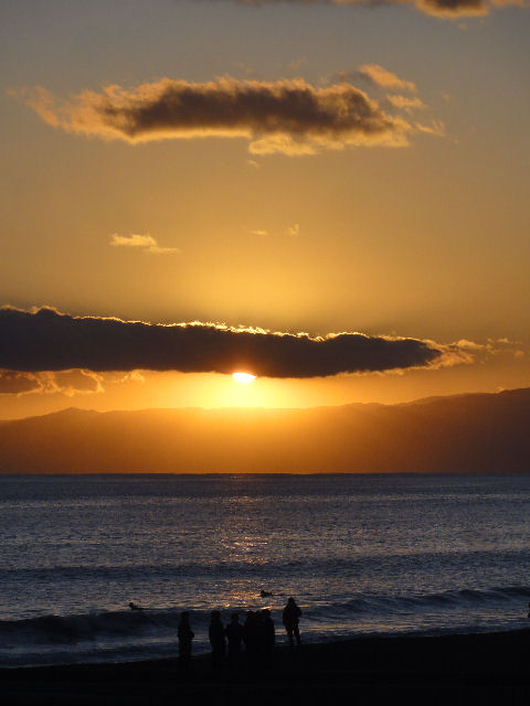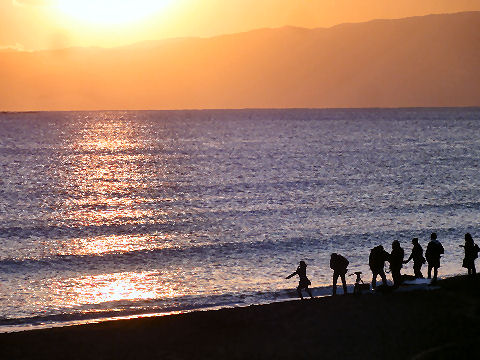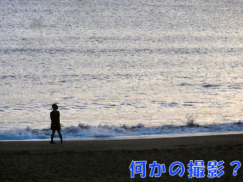 夕方暗くなるまでモデル?とスタッフ7−8人が波打ち際にいて何かの撮影、随分暗くなるまでやっていた。一体何の撮影だろう。