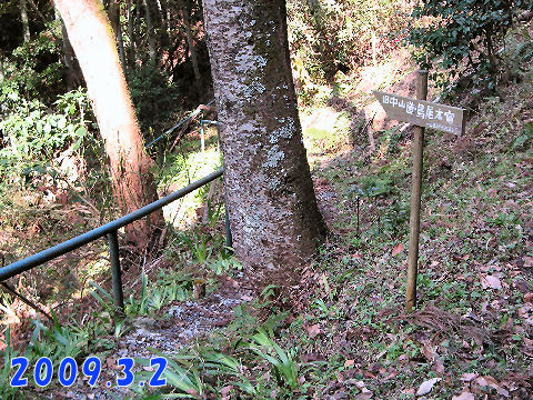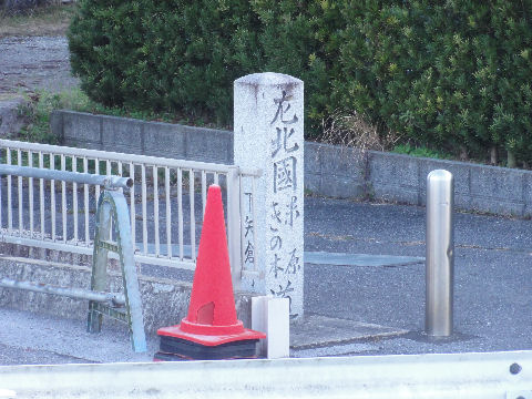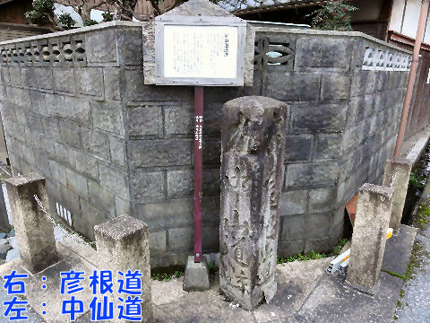 中宿の一里塚跡を発見、真っすぐでは進めないので鷹巣橋をわたり再び旧道へ。