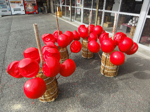 道路の両側に達磨屋さんが並ぶ、草津温泉へ行く道しるべもあり。国道へ戻り新君が代橋を渡り、右手の旧街道を南下、煉瓦造りの建物が残る。