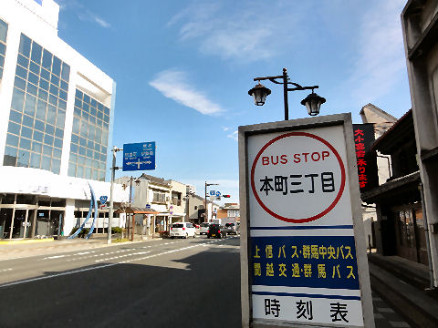 常磐町で左折して赤坂通りから本町通りへ、本町3丁目で右折し南進、高崎市の中心部を進む。