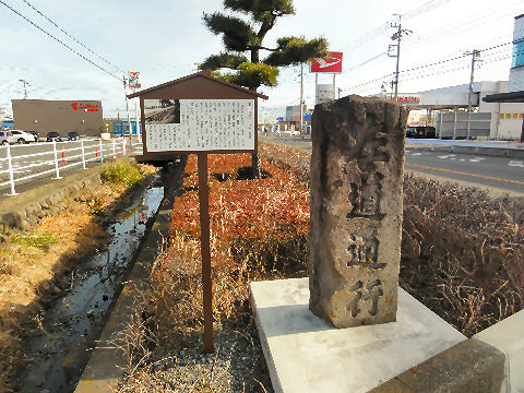 高崎アリーナを左に見て、新幹線高架、古墳のあるお寺を過ぎると倉賀野宿で脇本陣が残る。