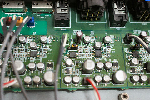 横幅が一杯なのでアナログ信号線も細いもの、切替のため信号線が多く混みあっている。