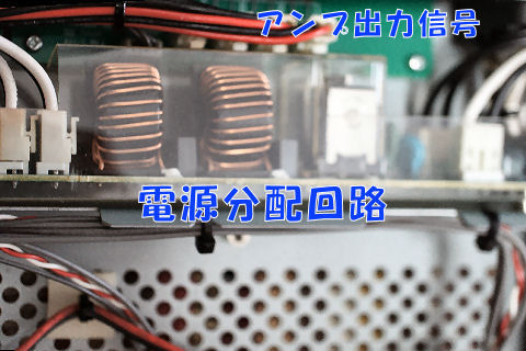 AC電源を分配する基板があり各ユニットへAC100Vを分配、電源リレーとフィルタで分配のみ。