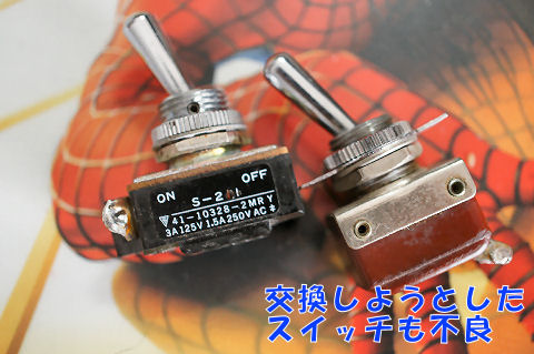 入手当時からスイッチ部分が不安定だったのでスイッチ故障と判断して交換実施、同じ形状のスイッチを見つけたが