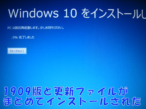 とりあえずメモリを1.5GBにしてWindows10を入れた、1909版(最新)と一緒に更新ファイルも自動的に ダウンロードされてインストールされた。HDDを2つのパーティションに分割しデータ用のDドライブを 作成、壁紙も入れEdgeのお気に入りも入れて使えるようになった。ただ無線LANがないのが問題点。 |