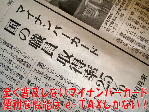 普及率は15%以下、公務員でさえ25%程度。番号さえあれば別に何も困らないので普及するわけがない。 これで確定申告すれば税金を5%減額してくれるとかあれば別だが、何もメリットなし。最近はカードが無くても IDと暗証番号でe-Taxも利用できるようでカードも不要に。 |