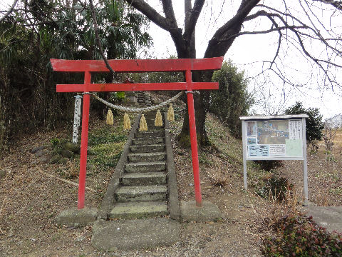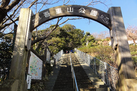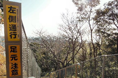 帰りは梅沢口へ出るべく芝生広場からまっすぐ下る、通路の整備が行き届かず歩きにくい階段のまま。 入口の神社から線路沿いに駅に戻る。 |