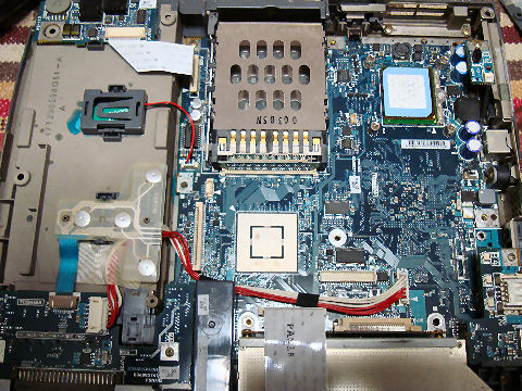 CerelonからPentium4へ換装するもやはり遅い。ケースは結構大きいが中身が詰まっていて下面側が特に熱くなる。 TDP=84Wでチップセットも11Wだとか,100W 近く食うので熱いのは当たり前か。 |