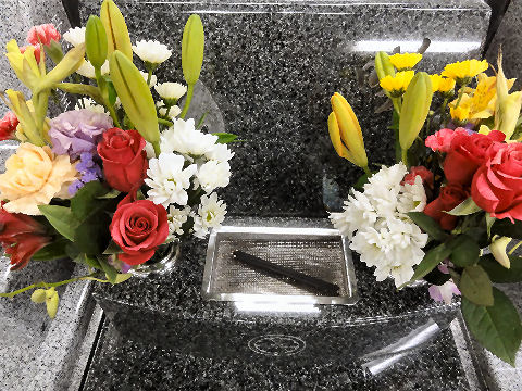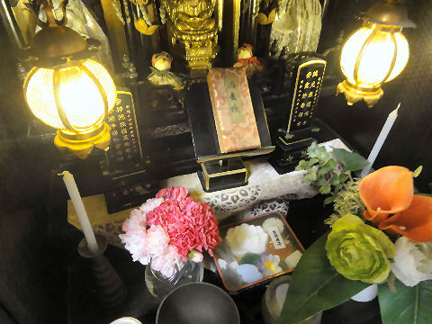 ほとんど傷んでいないカーネーションは持ち帰り、仏壇に再利用。 |