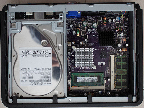1Uサイズのサーバを使おうと画策したが冷却ファンの騒音が何とも対策できず断念、超小型のデスクトップなど他の選択肢も 探すが一長一短、こんなもの(動作未確認)を1000円でみつけ落札した。 全閉構造で厚めのアルミヒートシンクで放熱する構造、CPUはあまり高性能ではないAtomのD525(1.8GHz)だが現状よりは改善。 最新モデルではi5やi7搭載モデルもあるようだが業務用で超高価。 |