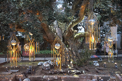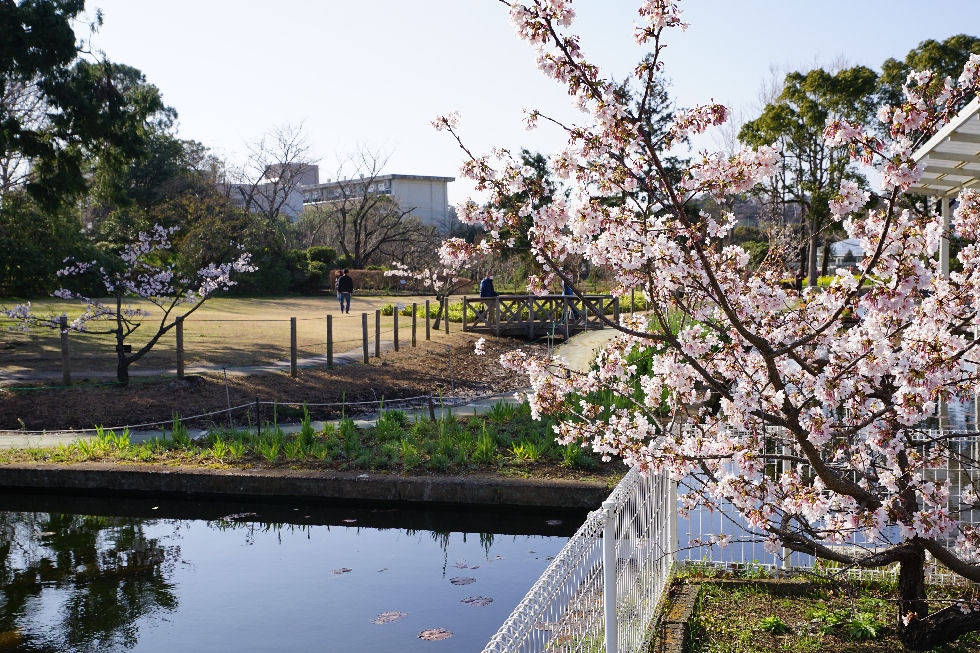 入口に近い池のそばの木は駄目になったようで若い木になり花も少ない。 |