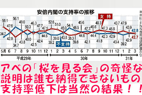 「桜を見る会」の前夜祭で安倍事務所は一切関与してないという「嘘」から始まった一連の大嘘、お友達のホテルは ノーコメントで切り抜けたが、ANAホテルは丸め込めず、嘘が次々バレる事態へ。支持率急落も当然の結果。 |
