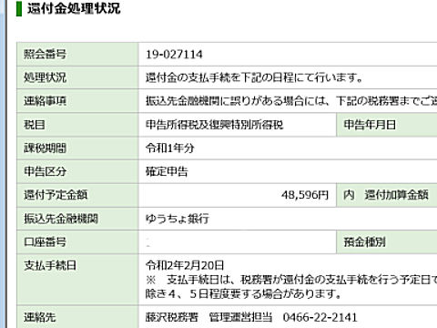 昨年分は自由診療の医療費があったので例年より還付額がやや多い。 |