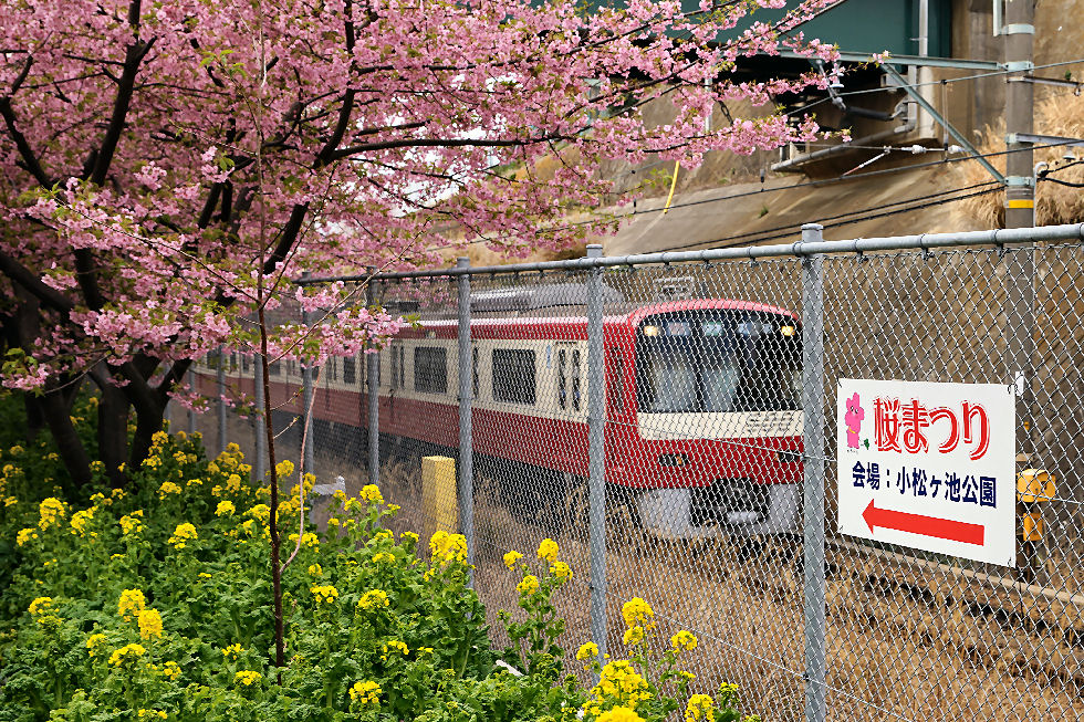 ![]() 桜と菜の花と京浜急行 |