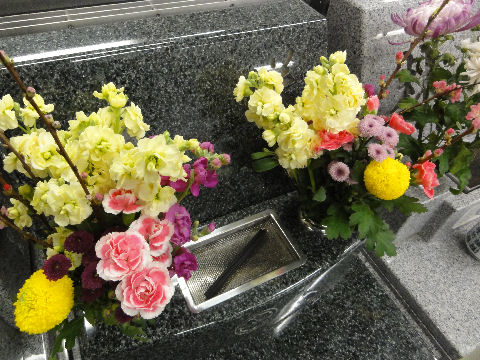 冬らしい?寒さの中、墓参り(兼運動)に出かけた。寒い日が続く(暖冬だが)ので花が長持ちする。 |