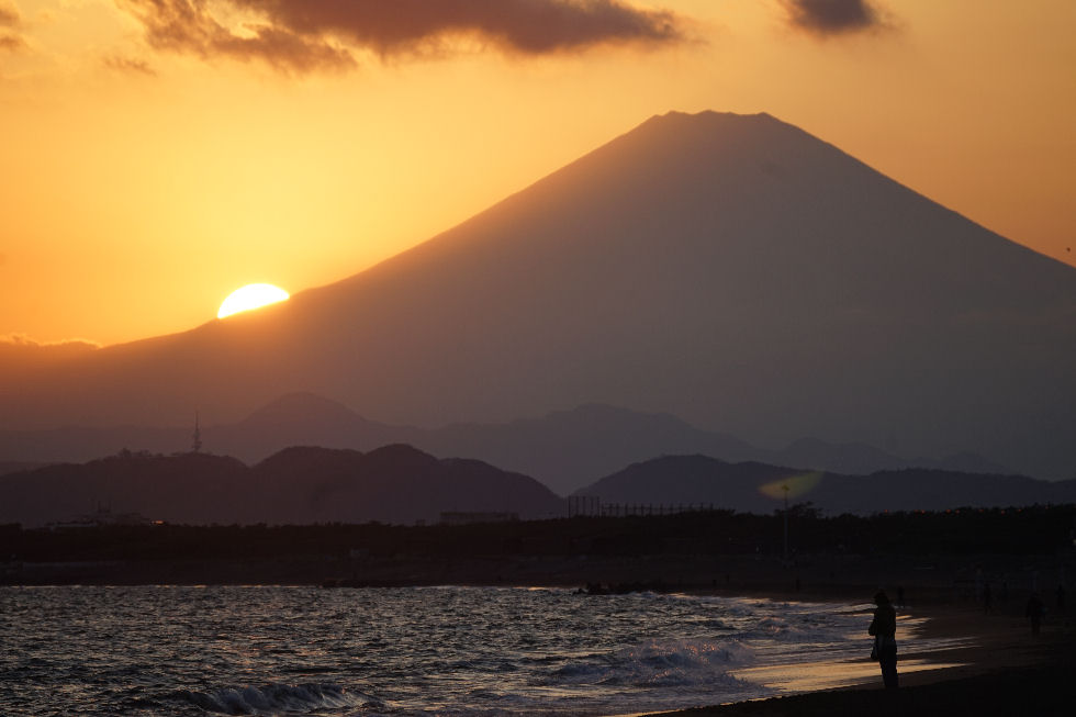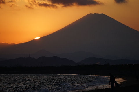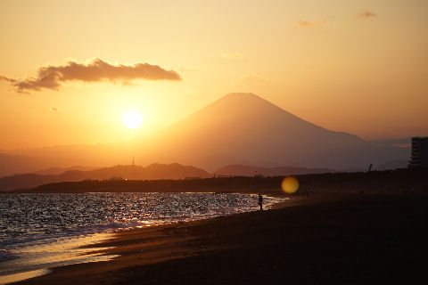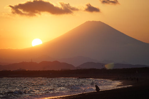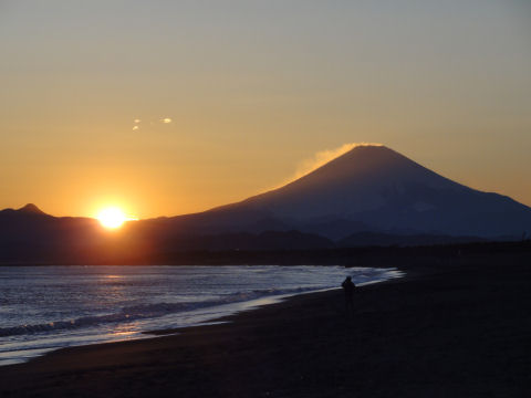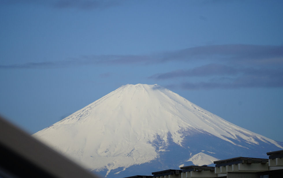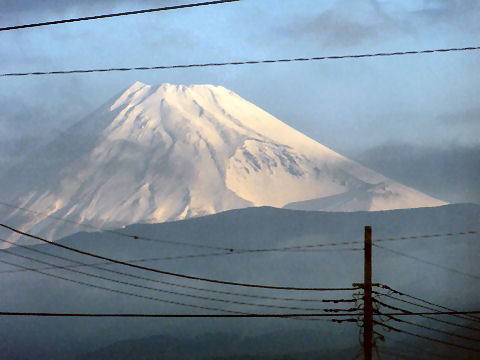![]() 夕焼けにはならなかった富士山 昨日は真っ赤な夕焼けだったが雲があり富士山は見えず、今日は雲は無いが夕焼けにはならず。 |