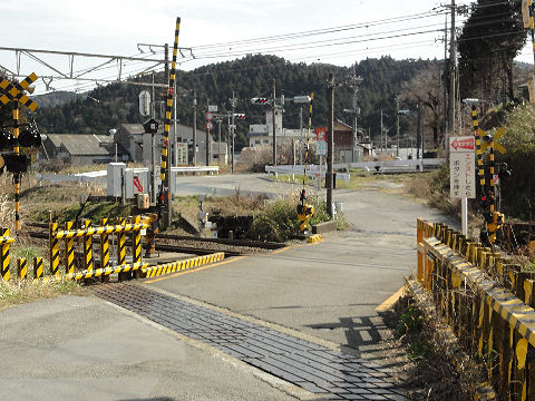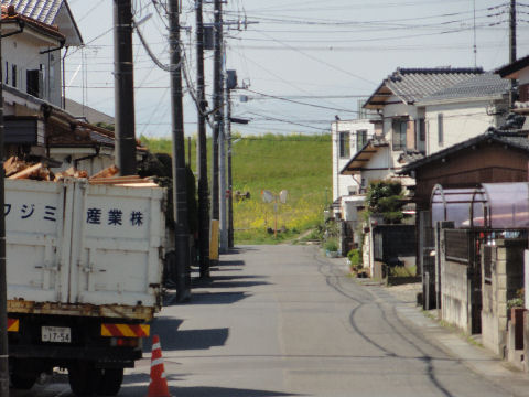 七里崖が続きこの端を回り込んで駅へと続く道をたどる、河岸段丘の街でわに塚は駅から川を越えた2段目の段丘上にある。 |