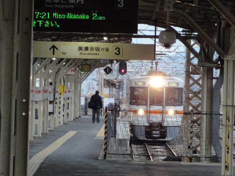 小雨の降る真っ暗な朝の出発、5時18分の下り一番電車で大垣を目指す。乗換は熱海・沼津・浜松・豊橋で大垣へ到着。 途中に今月オープンした新駅「御厨」にも停車。大垣から11時26分の臨時快速で樽見へ、混雑を予想したが1両でも 空いていたので座れた。 |