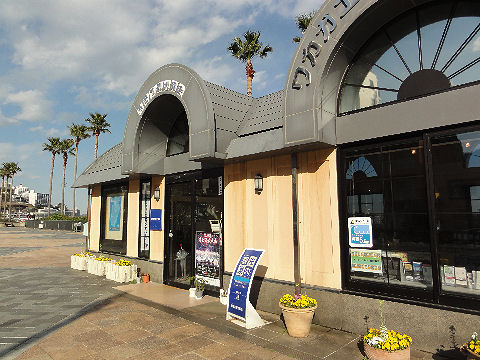 海岸にあるワカガエルステーションにて配布。海岸は綺麗に整備されていて若者も多くいた。 |