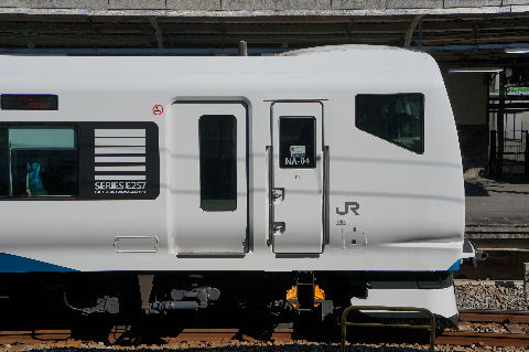 中央線特急の中古を手直しした車両、デッキ再塗装無しやモケット張替えだけの座席で傷がそのまま、部分グリーン車を むりやり全席グリーンにした為に窓の柱が邪魔な席が出来たりとヤッツケ改造の非難の声もあるが、儲け第一のJR東日本の体質丸出し。 |