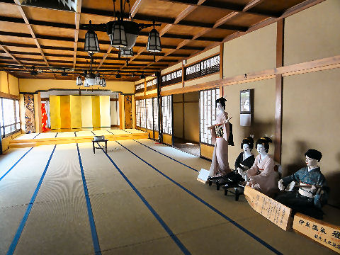 配布は古い旅館「東海館」を利用した観光施設で行っている、ついでに見学して貰えればラッキーということか。 200円払って3階建ての由緒ある旅館の中を見学、大広間や旅館の部屋がそのまま残っている。入浴施設もあり 500円と格安(今はコロナで休業?)。 |