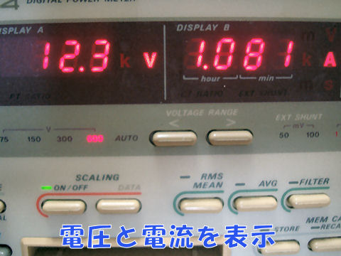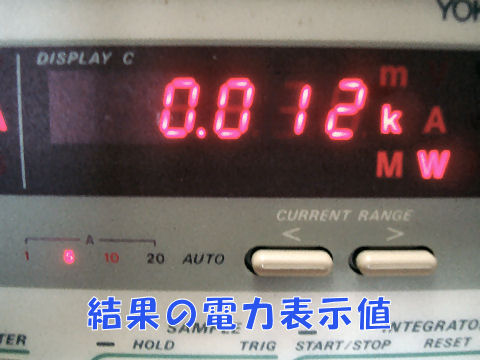 電圧と電流はそのままの値なのでほぼ合致のよう、電力もまあ正しいかなという感じ。 |