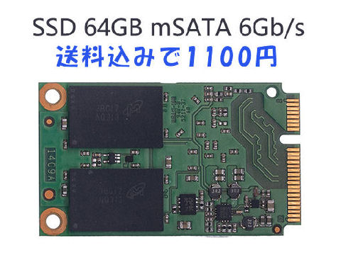 手元のIDE−HDDのPCの延命化のため、mSATAのSSDを落札、マイクロン製の64GB。 |