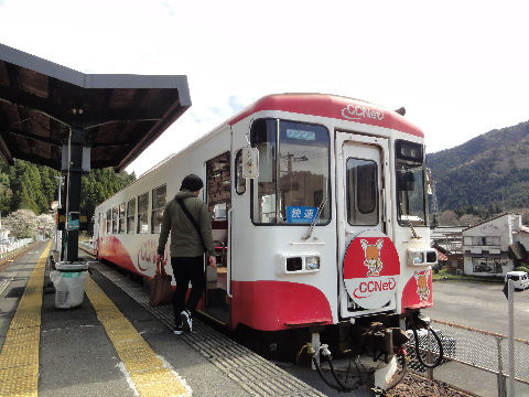 樽見鉄道は以前に本巣・織部までセメント工場を見に行って以来、初めて終点まで乗ったが後半は蛇行する根尾川を トンネルと鉄橋で縫って進むルート。終点から歩いて15分程の段丘の上にある公園に薄墨桜のある公園がある、殆どの人は車で くるようで樽見鉄道の混雑は無い?谷汲口はミイラの谷汲山華厳寺への入口だが降りる人はほんの少しだけ。 |