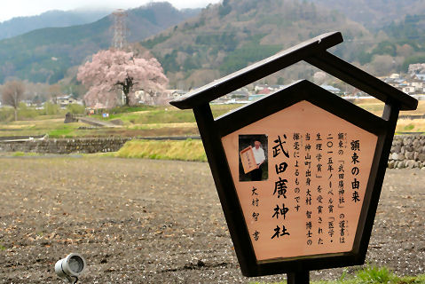 バス停から歩くと少し先に韮崎大村美術館、ノーベル賞の大村智氏のコレクションを集めたもの、出身地がここらしい。 わに塚近くの神社・武田廣神社にも大村氏の揮毫があった。 |