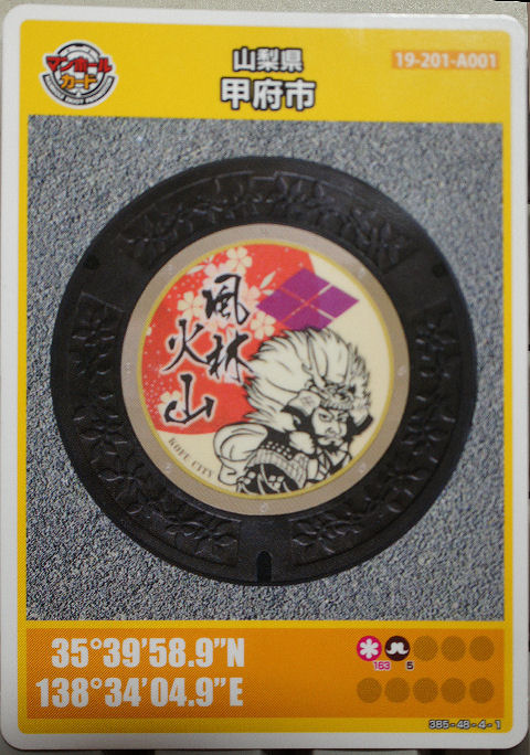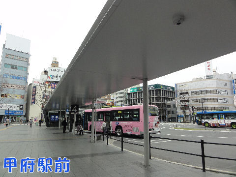 100名城巡り以来の甲府の街、駅前のバス案内所・観光案内所でマンホールカードを貰う。 |