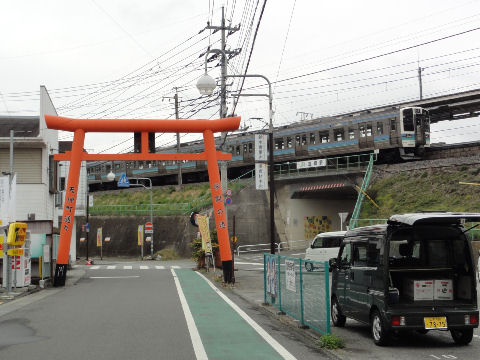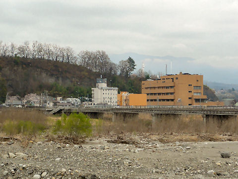 青い空は望むべくもないどんよりした空で八ヶ岳は何も見えず。45分ほど撮影し徒歩で韮崎駅へ戻った。 ほぼ下り坂で川岸まで下るので1時間足らずで韮崎駅へ到着、雨が降り出しそうな空模様。 |