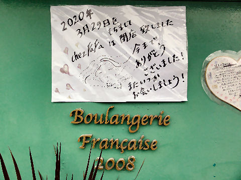 フランス人シェフ(だった)のパン屋さん(「仏語でブーランジェリー)が今月末で閉店との告知が張ってあり29日までの営業だったよう。 |