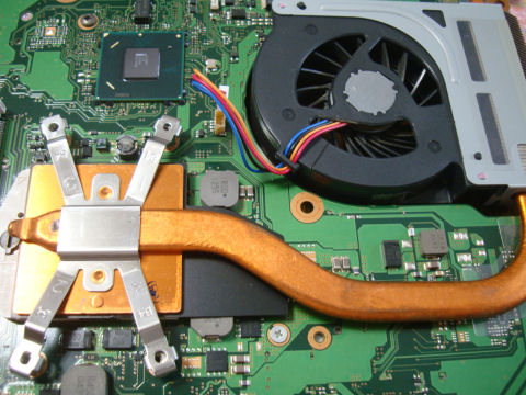WEB上の情報を参考にして分解、ファンを外すにはマザーボードまで外さないといけないという困った構造。グリースは完全に固くなっていたので塗り替えを実施し再度組み立て。ファンそのものはベアリングの固化もなくスムーズに手で回る。 |