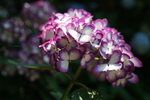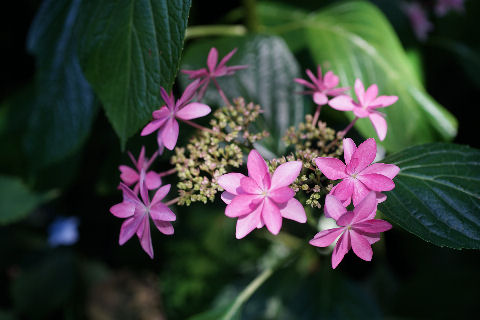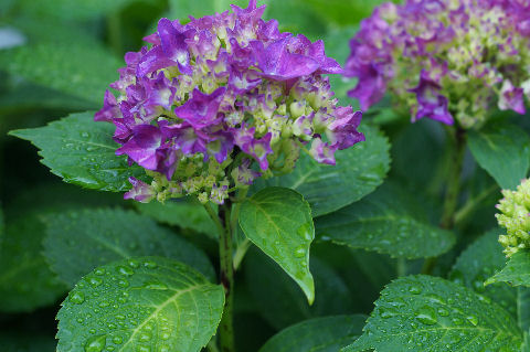 紫陽花は大分咲いているがまだ満開にはもう少しといったところ、やはり雨上がりのしっとりした姿が好ましいがカメラには厳しい。 |